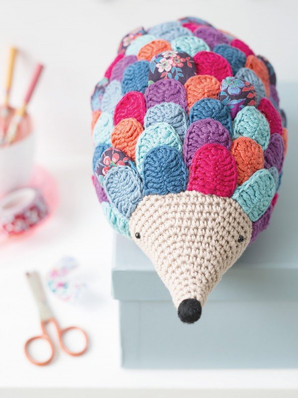 Enter into the whimsical, crocheted world of Eleonore & Maurice, a talented designer who blends pastel yarns with delicate floral fabric to make truly adorable amigurumi creations: plush animals with little accessories, as well as sweet cushions. The combination of the calming pastel cotton yarn and the delicate floral designs give beautiful results. These cute creations include a cat cushion, a bird family, a hedgehog, a rabbit and a reindeer.