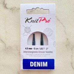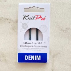 Discover the serenity of knitting with the Denim (Indigo Wood) Mini Interchangeable Needles 2″ (5cm). Inspired by the calming hue of indigo, this beautifully crafted knitting needles features polished Indigo wood tips that offer a smooth glide and snag-free joins. Clearly marked sizes ensure easy identification and seamless transitions between projects. Ideal for small circumference knitting, these mini needles are perfect for creating socks, sleeves, baby garments, toys, and more.