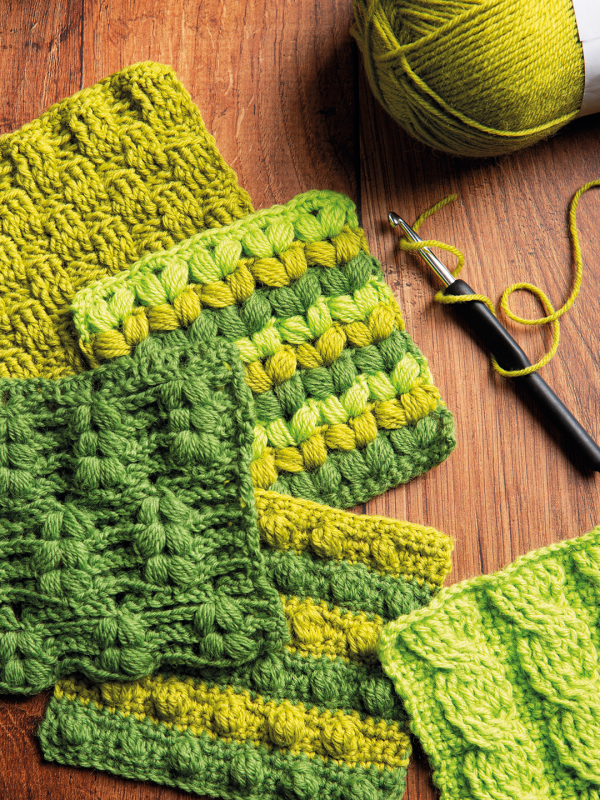 A range of stitches, including all the basics, plus tactile raised textures, mosaic colourwork and lightweight lacework.